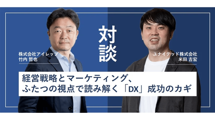本記事では、ユナイテッド株式会社の米田吉宏執行役員、株式会社アイレップの竹内哲也執行役員が、日本企業のDX成功のカギから、協業をスタートさせる真意、そして2社が目指すDXの在り方までたっぷりと語りました。