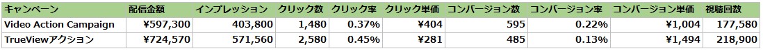 3 Video Action CampaignとTrueView for Actionの成果比較