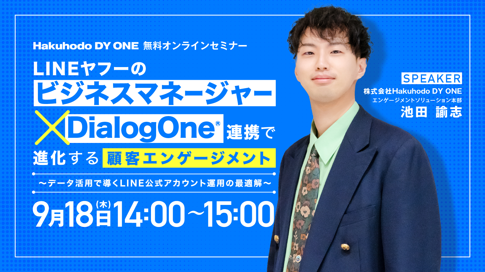 開催日|2025.9.18 14:00- LINEヤフー「ビジネスマネージャー」×DialogOne®連携で進化する顧客エンゲージメント~データ活用で導くLINE公式アカウント運用の最適解~